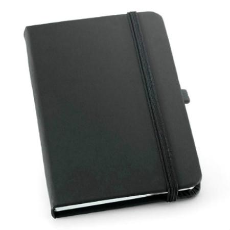 Capa dura, porta caneta e 80 folhas não pautadas.