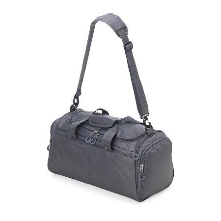Bolsa de viagem de 28 litros em poliéster oxford resistente à água com quatro compartimentos. Contém alça de mãos com suporte de juntura, bases antiderrapantes e acompanha alça transversal com suporte de apoio para ombro.