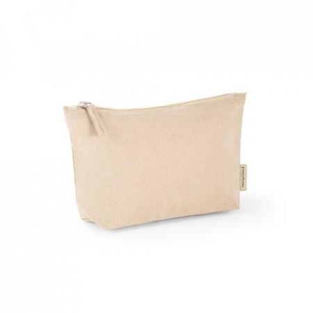 Bolsa multifunções em 70% algodão reciclado e 30% poliéster reciclado (140 g/m²). Interior com forro 100% algodão. 200 x 125 x 40 mm