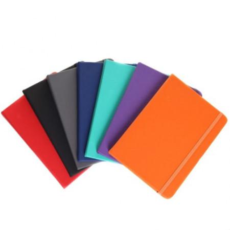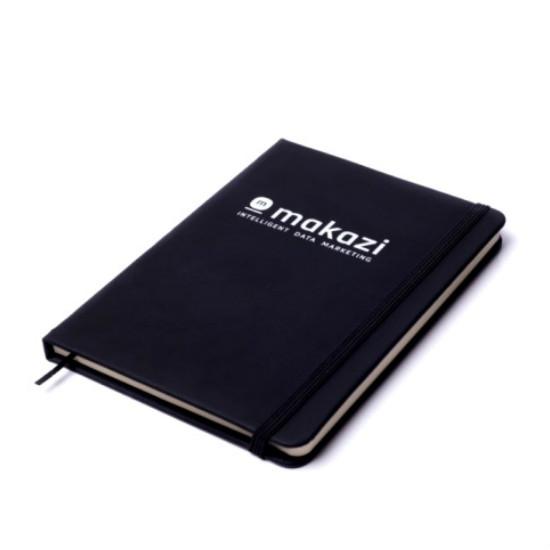 Capa dura com elástico e marca páginas. Contém 80 folhas pautadas, cor marfim.