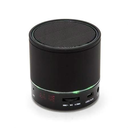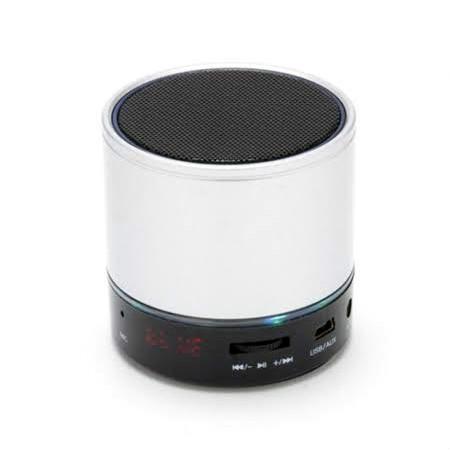 Caixa de som multimídia com Bluetooth com rádio FM, possui entrada USB, micro SD (TF) ,AUX e P2, microfone integrado, falante de 3W , cabo USB/AUX, produto de metal.