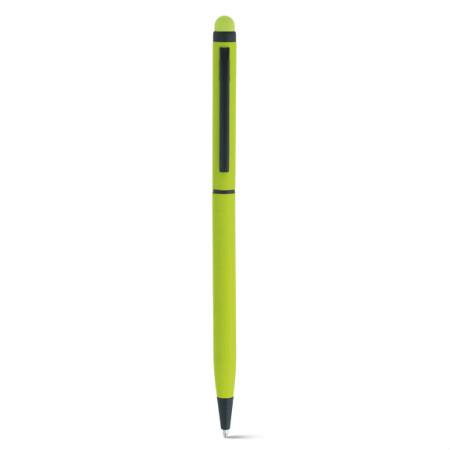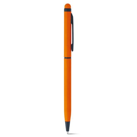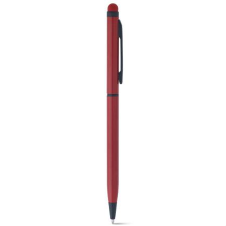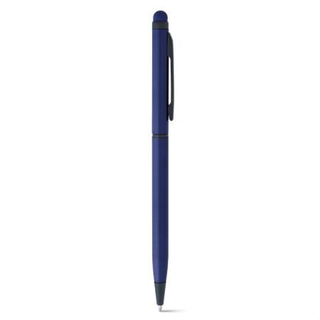 Caneta esferográfica em alumínio. Diversas cores e com ponteira touch. Escrita em azul. Medidas: 8 x 137 mm