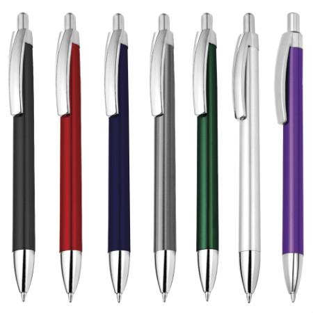 Caneta plástica esferográfica retrátil escrita em azul