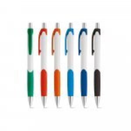 Esferográfica em ABS com grip e acabamento brilhante. Ponteira cromada. Até 1,5 km de escrita. ø11 x 140 mm