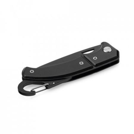 Canivete em aço inox e metal com fecho de segurança e mosquetão. Fornecido em caixa presente. 101 x 10 x 29 mm | Caixa: 108 x 39 x 15 mm