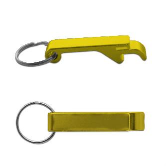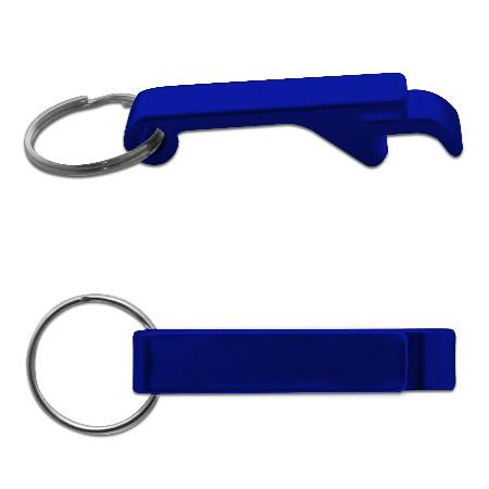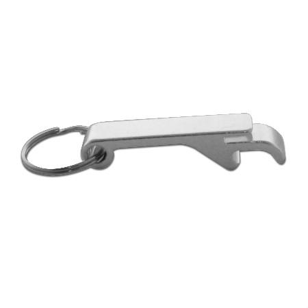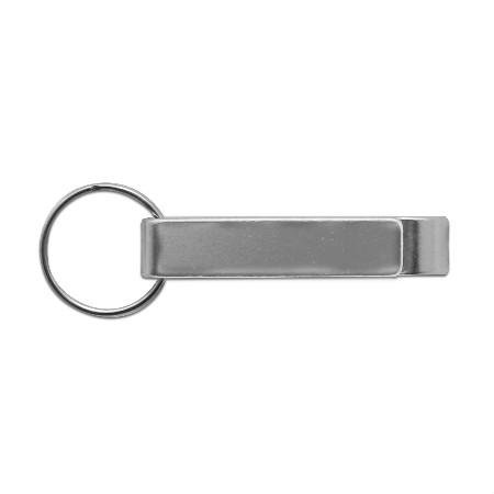 Chaveiro de alumínio com função abridor de garrafas e latinhas.