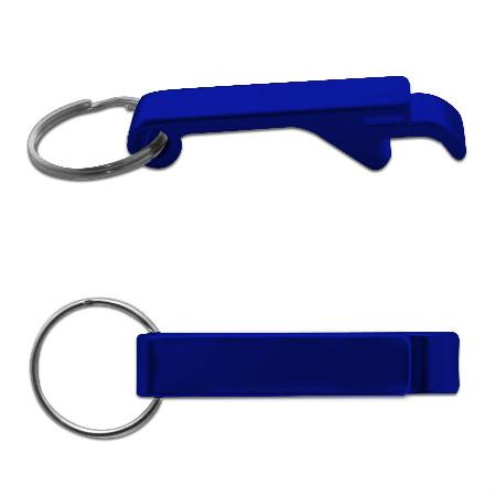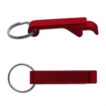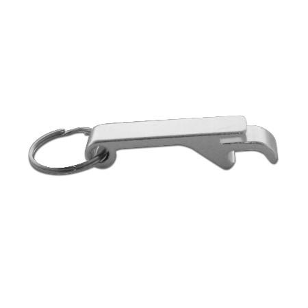 Chaveiro de alumínio com função abridor de garrafas e latinhas.