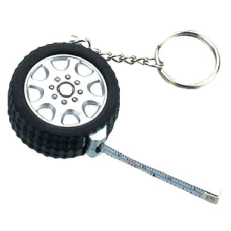 Chaveiro com trena de 1 metro, em formato de pneu.