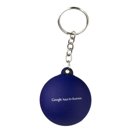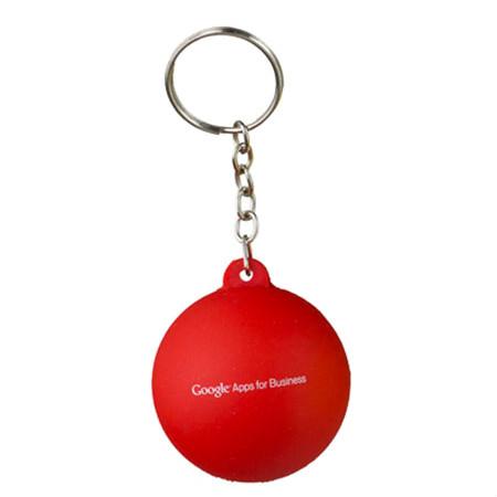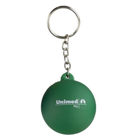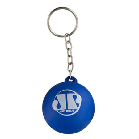 Chaveiro de vinil, em formato de bolinha, com 4 cm de diâmetro.