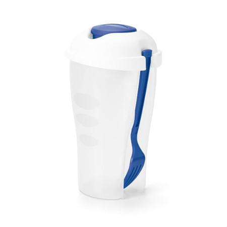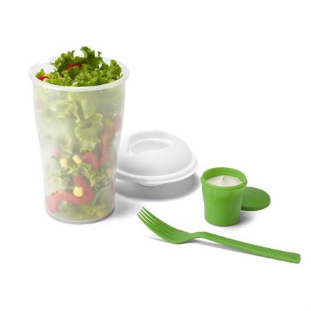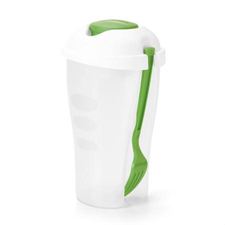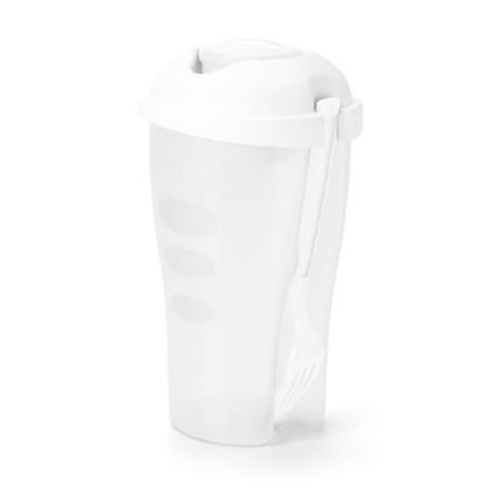 Copo para salada. PP. Com garfo e molheira. Capacidade: 850 ml. Apta para microondas (retirar a tampa). Food grade.