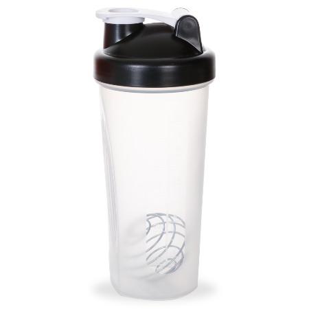 Coqueteleira para shake com capacidade de 600ml, copo com detalhes laterais em relevo e escala de medições em ml e oz. Tampa rosqueável com bocal e trava de segurança, acompanha misturador de mola.