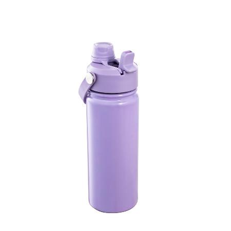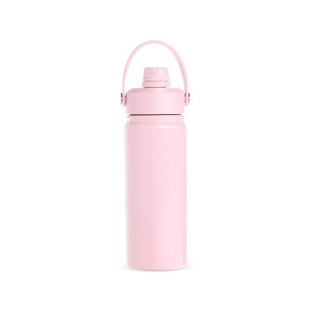 Garrafa térmica em aço inox 304 e capacidade para até 600ml. Apresenta estrutura de parede dupla e vedação a vácuo, oferecendo a conservação da temperatura de líquidos por mais tempo. Possui tampa rosqueável feita em plástico com proteção para o bocal, bico flip, canudo interno removível e alça fixa para transporte.
