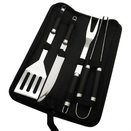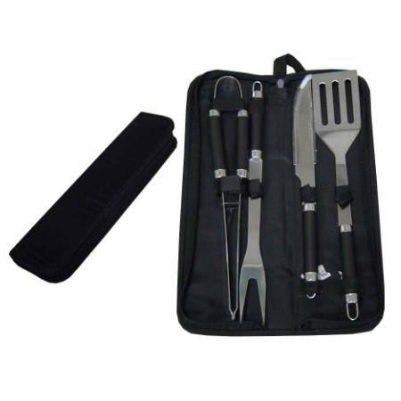 Conjunto para churrasco em estojo de nylon com 04 peças em inox (faca, garfo, pegador e espátula).