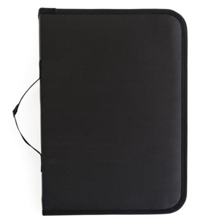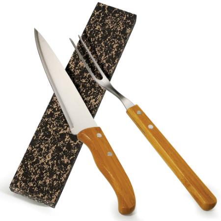 Sugestão de gravação: uma gravação a laser na faca e no garfo e silk screen uma cor no estojo.
