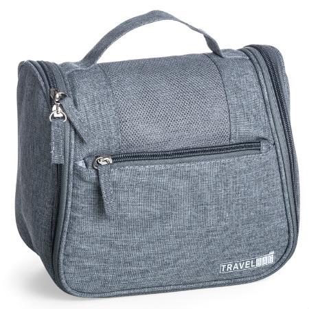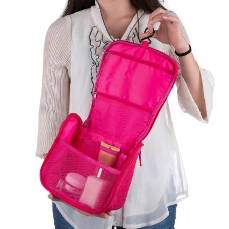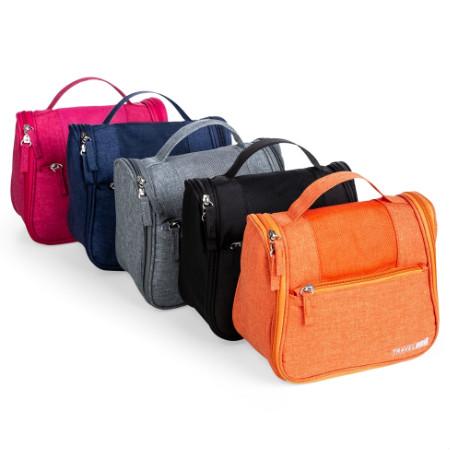 Necessaire organizadora “travel bag”. Tecido nylon Oxford, possui bolso frontal e alça superior, parte interna com gancho plástico; bolso interno superior em nylon e bolso de tela ambos com zíper; bolso inferior aberto de tela com 4 divisões de bolsos também em tela. Perfeita para lhe acompanhar em viagens e até mesmo transportar seus itens pessoais do dia a dia com organização e praticidade.