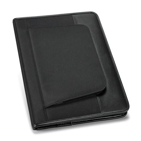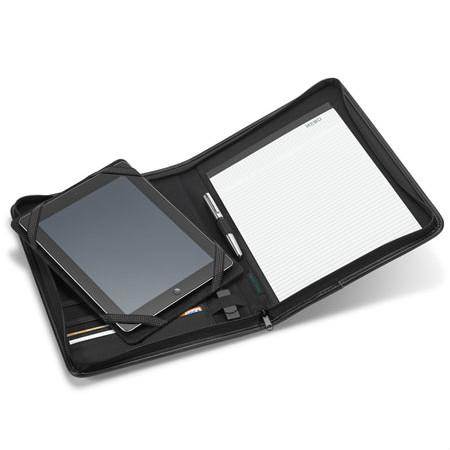 Pasta A4. Couro sintético e microfibra. Bolso exterior com zipper. Interior com suporte para tablet.
