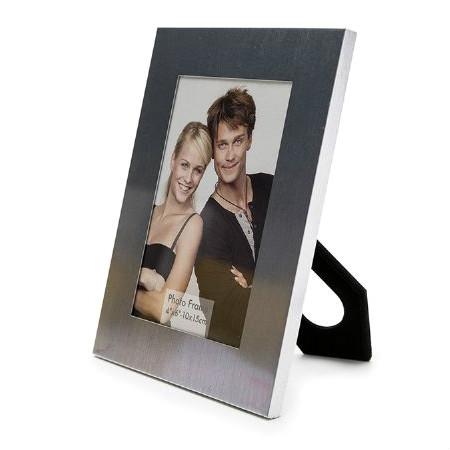 Porta retrato de alumínio para fotos 10x15cm. Parte traseira revestida com veludo inclusive o apoio, possui furação caso haja necessidade de pendurá-lo.