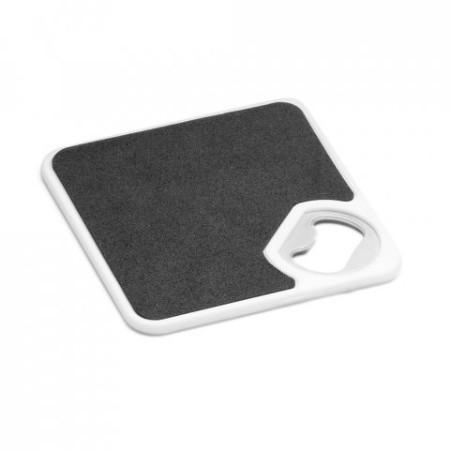 Porta copos em ABS com abridor de garrafas e esponja antiderrapante na base. 82 x 82 x 4 mm