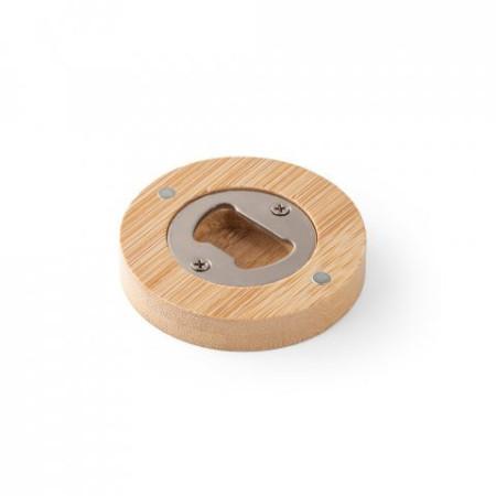 Porta copos em bambu com abridor e imã para fixar em superfícies. A cor e o resultado da impressão nos materiais naturais pode variar entre produtos. Ø65 x 11 mm