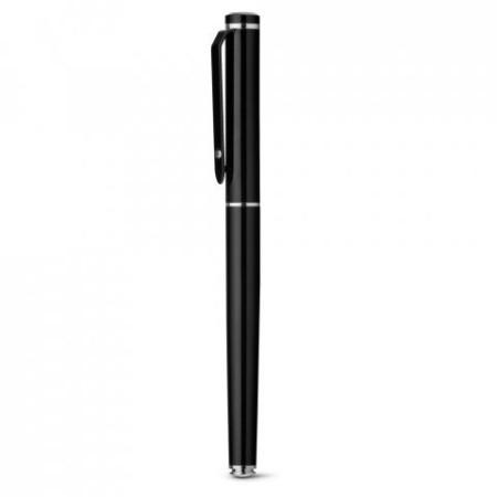Roller em metal com clipe com detalhe brilhante na ponta. Fornecido em estojo de oferta. Escrita azul. Esferográfica: ø10 x 136,5 mm | Caixa: 182 x 22 x 42 mm