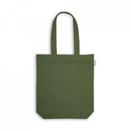 Sacola em 50% algodão, 30% algodão reciclado e 20% poliéster reciclado (220 g/m²), com alças de 62 cm. 380 x 400 x 100 mm