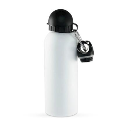 Descrição: Squeeze 500ml de alumínio com pintura metalizada, tampa rosqueável e acompanha um segundo bico com mosquetão (não é térmico).