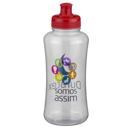 Squeeze ecológico 550 ml, com frasco injetado em PET. Material atóxico. Disponível em diversas cores translúcidas.